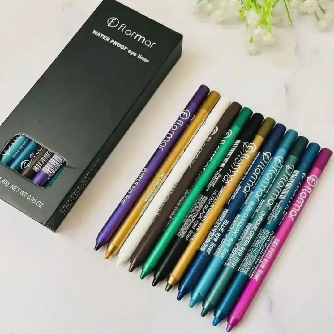 Add a pop of color to your eyes with the Flormar Colored Eyeliner Set. This set includes 12 vibrant, long-lasting eyeliners that glide on smoothly for precise application. Perfect for creating bold, eye-catching looks, these eyeliners are suitable for all skin tones and can take your makeup from day to night effortlessly.
