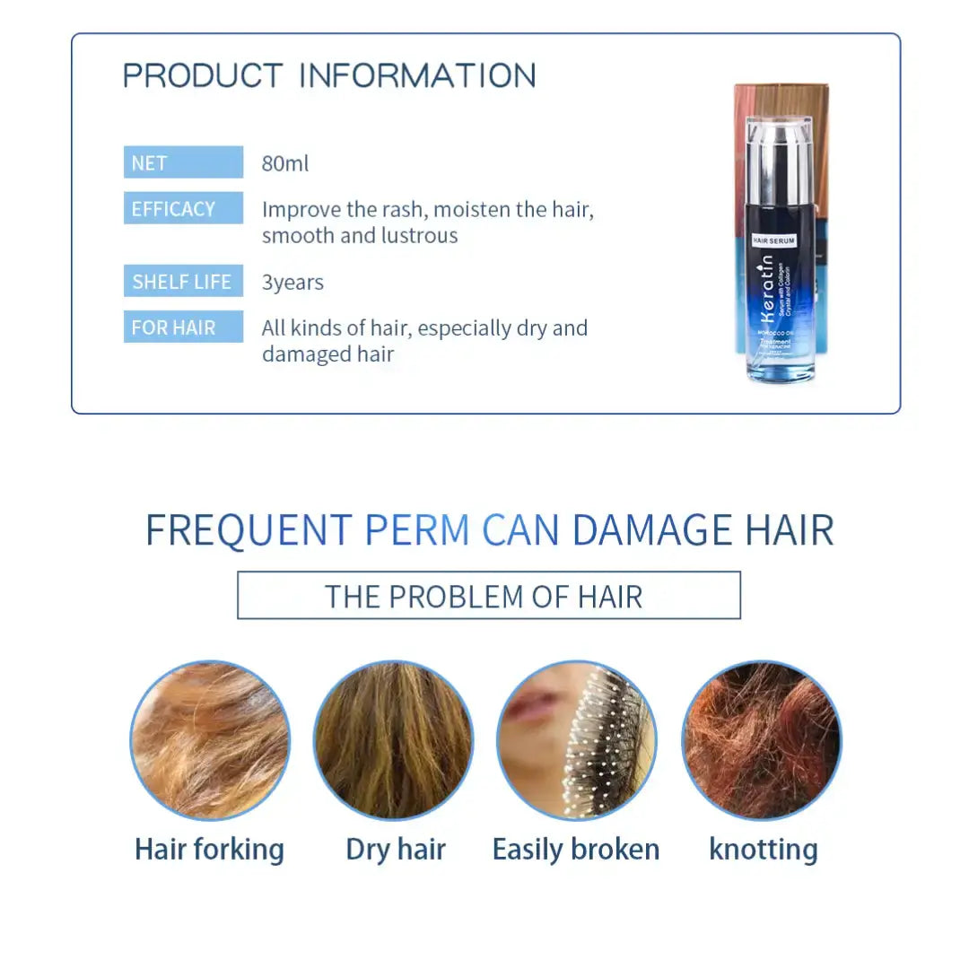 Get smooth, silky, and frizz-free hair with Keratin Moisturizing & Smooth Hair Serum enriched with Morocco Oil. This advanced hair serum is designed to nourish, repair, and protect hair from dryness and damage while giving it a natural, healthy shine.