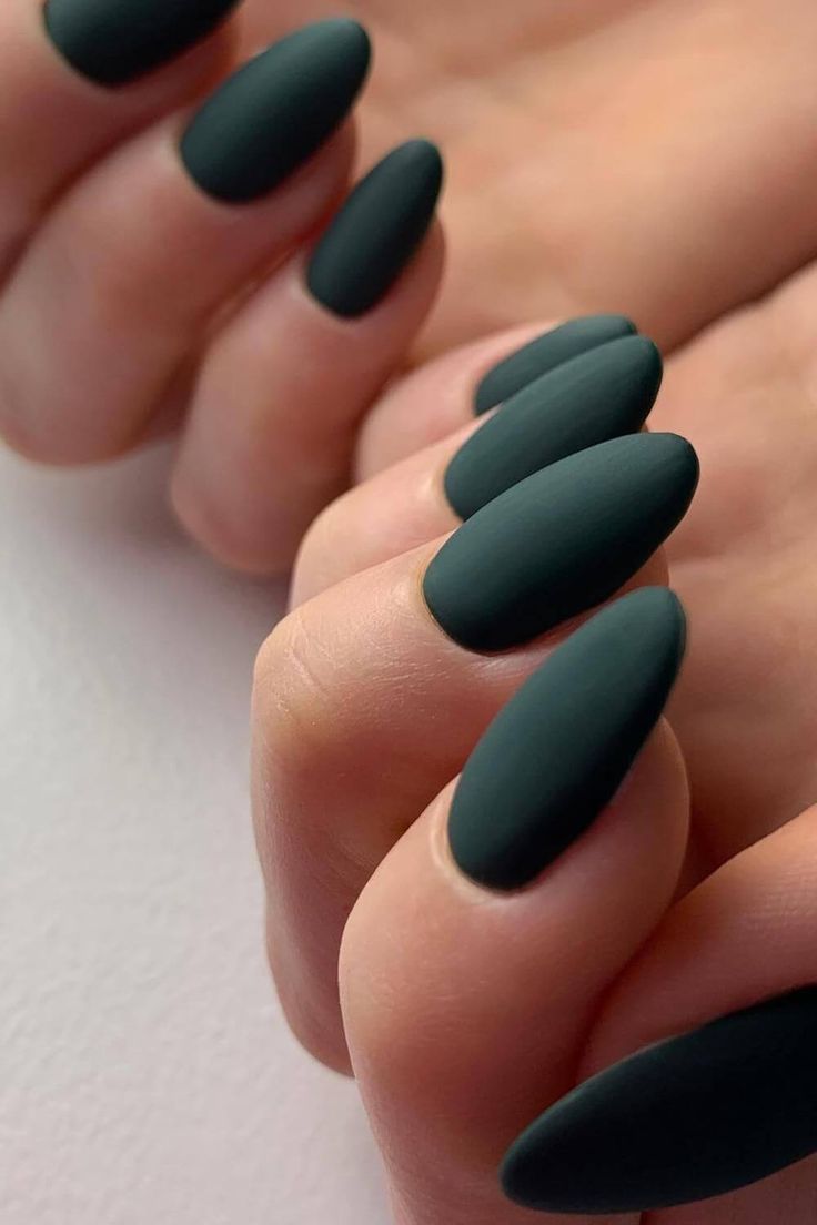 Matte Green Almond Shape Nails
